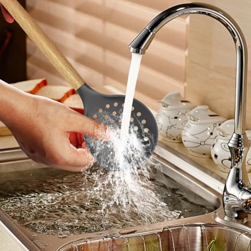 • سيليكون عالي الجودة ومقاوم للحرارة حتى 230 درجة مئوية: تم تصنيع هذا الطقم من سيليكون غذائي ممتاز يتحمل درجات حرارة تصل إلى 230 درجة مئوية، مما يضمن عدم ذوبان الأدوات أو تلفها عند ملامسة الزيت الساخن أو أواني الطبخ المشتعلة.