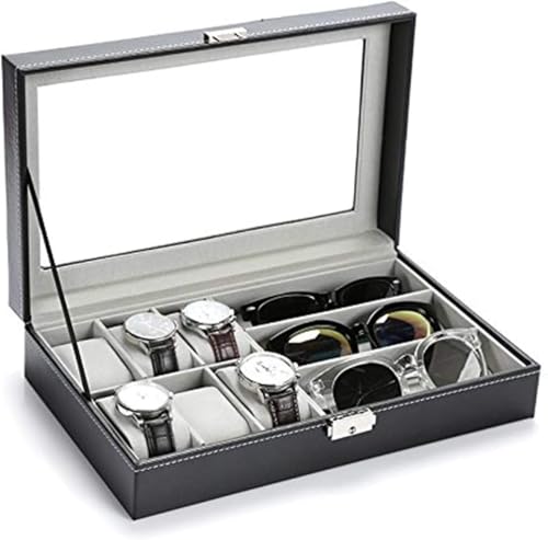 Generic - صندوق جلدي فاخر لتنظيم 6 ساعات و 3 نظارات | منظم مجوهرات متعدد الوظائف | جودة عالية وتصميم أنيق للتخزين والعرض.