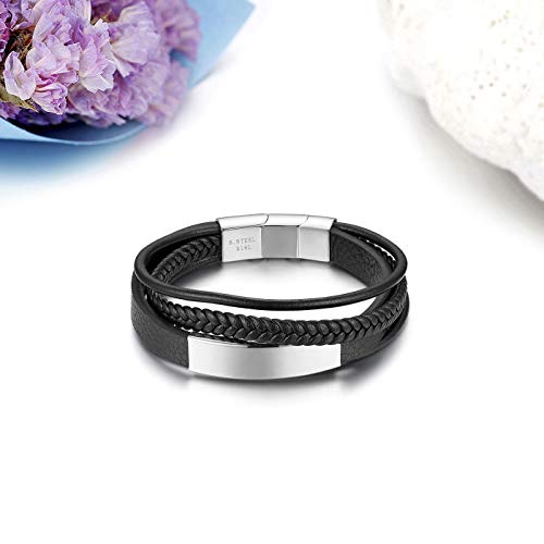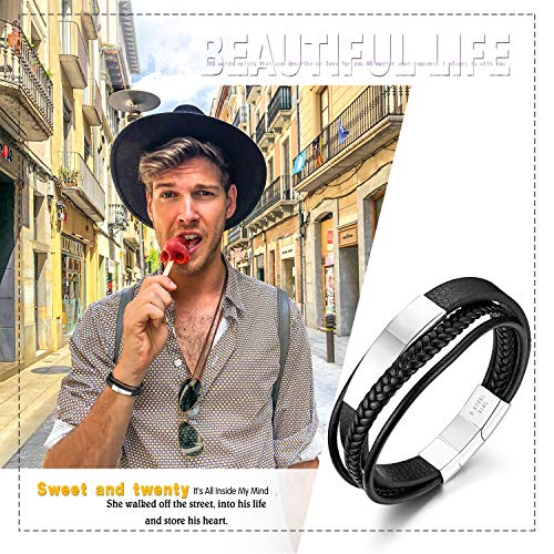 generic - سوار جلد فاخر للرجال، مشبك مغناطيسي من الستانلس ستيل، سوار شخصي