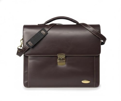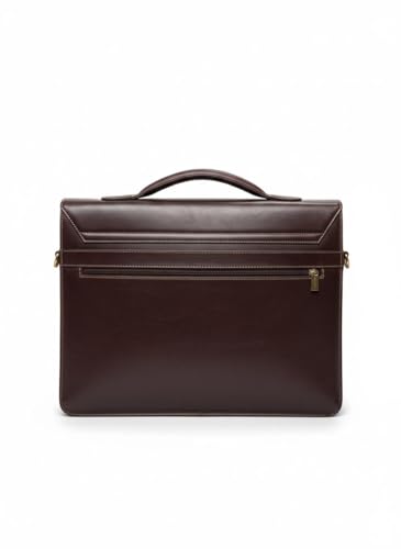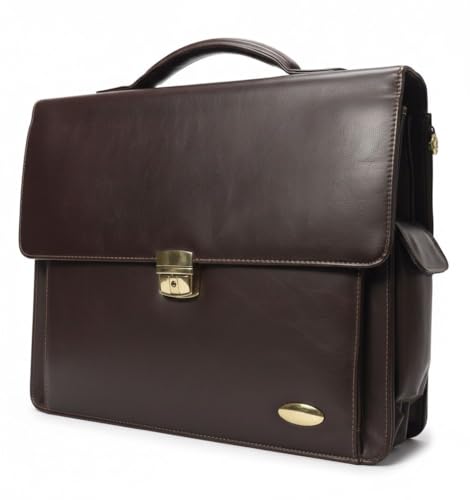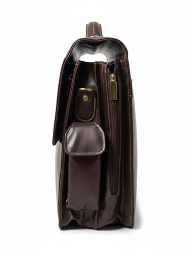 Generic - حقيبة عمل من الجلد الفاخر، جلد البقر البني الداكن، حقيبة لابتوب احترافية مع قطع معدنية ذهبية، تصميم متعدد الجيوب للعمل والسفر