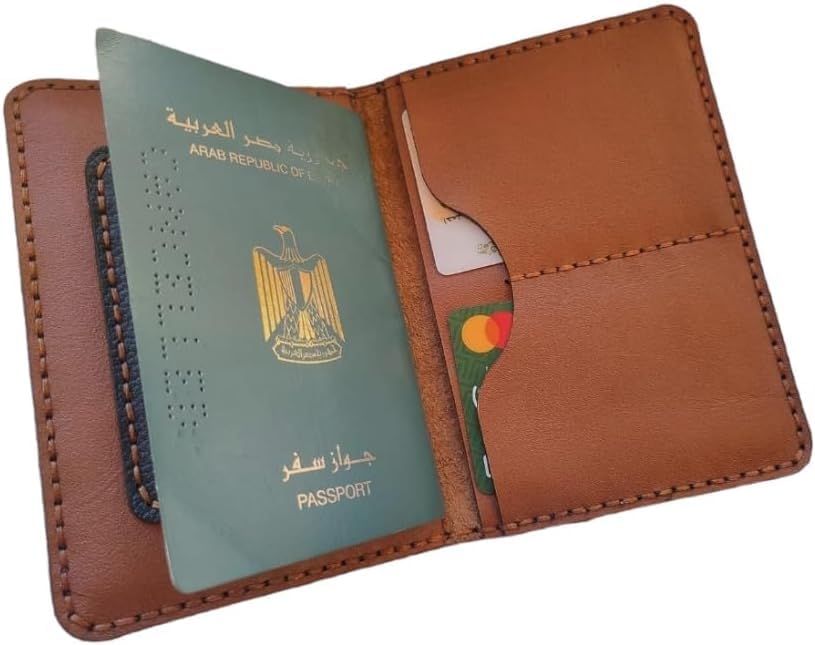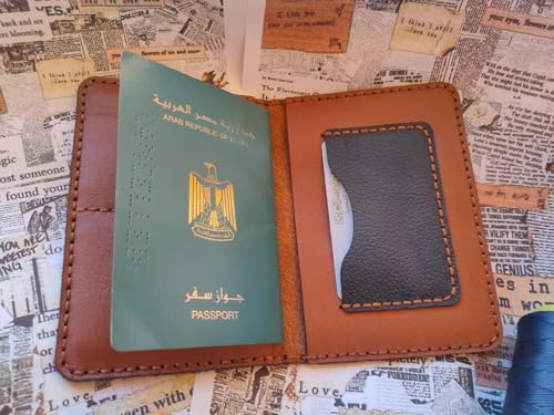 Generic - حامل جواز سفر من الجلد الفاخر، بني، محفظة بطاقات مصنوعة يدويا مع فتحات متعددة، غطاء وثائق السفر، تصميم نحيف ثنائي الطي