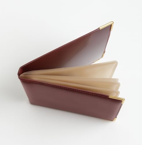 Generic - محفظة جلدية فاخرة بتصميم كلاسيكي، لون عنابي، مع زوايا ذهبية، حامل بطاقات متعدد الجيوب