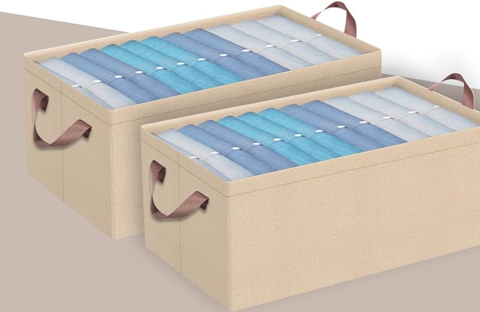 - 【محمول ومريح】مزود بمقبضين قويين، يسمح صندوق الكتان هذا بحمله وتغيير موضعه بدون مجهود، مما يجعل من السهل نقل الملابس بين الغرف أو تخزينها مؤقتًا، مما يوفر حلاً عمليًا ومرنًا لأي احتياجات تنظيم منزلي