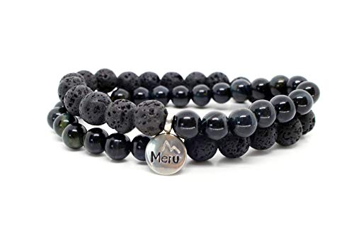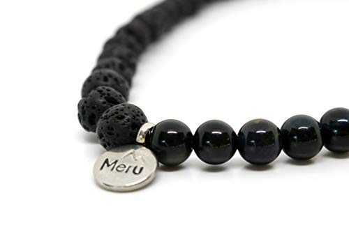 generic - اساور خرز مالا فاخرة للرجال - عين النمر والعقيق اليماني - عين النمر وصخور الحمم البركانية - مقاس L وXL - حجر ميلاد الجوزاء - حجر ميلاد مايو، مقاس L، XL، حجر كريم، صخور لافا، عين النمر