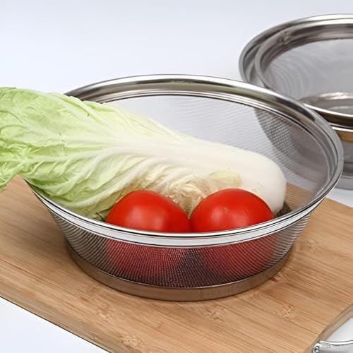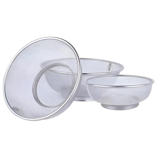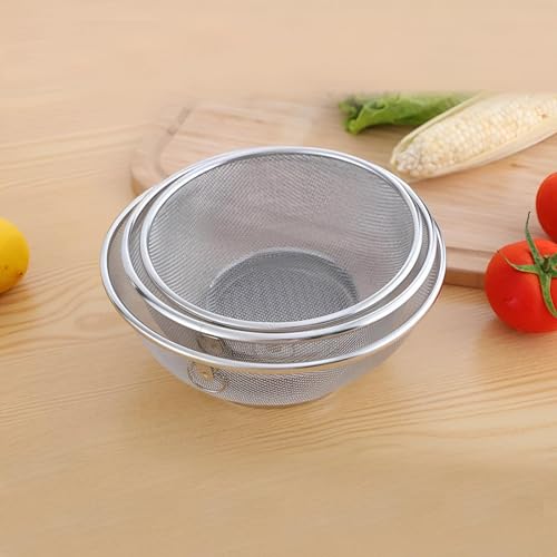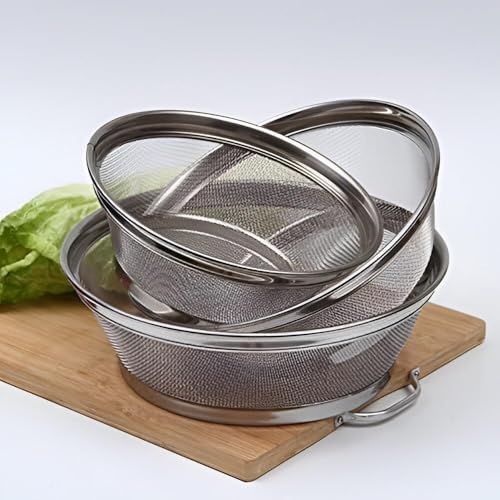 Generic - مصفاة شبكية فاخرة من الستانلس ستيل مكونة من 3 قطع تتضمن وعاء 22 سم و25 سم و28 سم بقاعدة متينة، مثالية لتصريف المعكرونة وشطف الخضروات وغسل الفواكه، امنة للغسل في غسالة الصحون