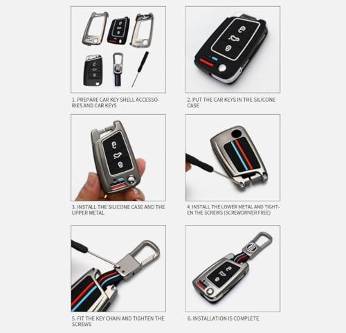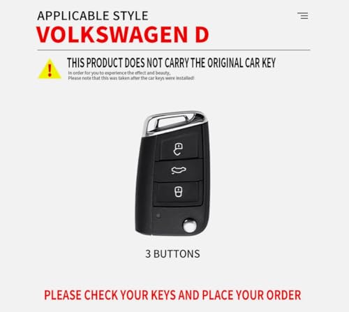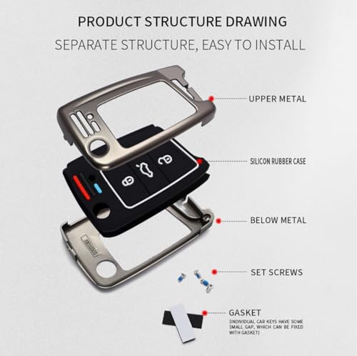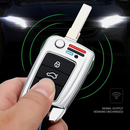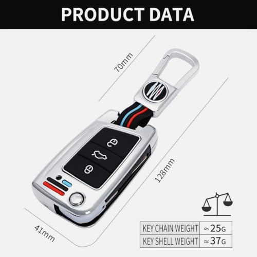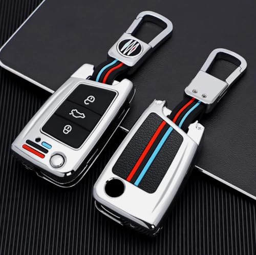 Generic - غطاء مفتاح سيارة معدني فاخر مع سلسلة مفاتيح – متوافق مع فولكس فاجن جولف، باسات، تيجوان، سكودا كودياك، وسيات – جراب حماية متين ضد الخدوش والصدمات مع تصميم أنيق وعصري