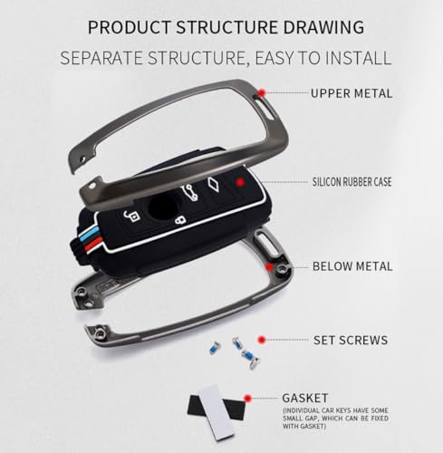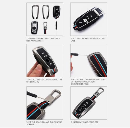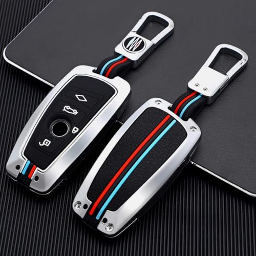 Generic - غطاء مفتاح سيارة معدني فاخر مع سلسلة مفاتيح – متوافق مع سيارات بي إم دبليو الفئة 1،2،3،4،5،6،7 وX3 وM3 وM5 – جراب حماية متين ضد الخدوش والصدمات، تصميم أنيق لإكسسوارات المفتاح الذكي