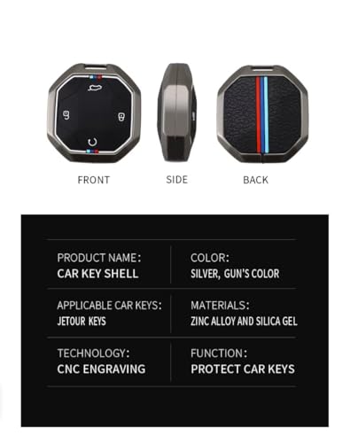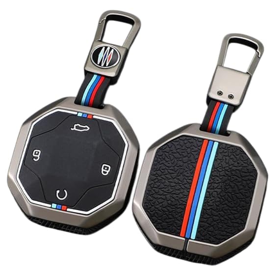 Generic - غطاء مفتاح سيارة معدني فاخر مع سلسلة مفاتيح – متوافق مع جيتور 2024 - T2 (4 أزرار) – جراب حماية أنيق للمفتاح الذكي، مقاوم للخدوش والصدمات، تصميم دقيق يتيح الوصول الكامل للأزرار