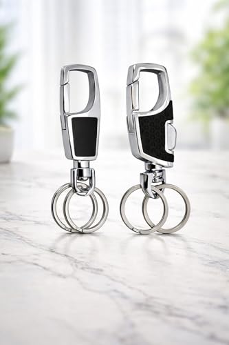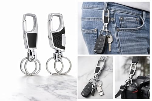 Generic - ميدالية مفاتيح معدنية فاخرة عدد 2 قطعة مع مشبك قوي ودوران 360 درجة – حلقة مزدوجة لتعليق مفاتيح السيارة والكاميرا والشنط متعدد الاشكال والالوان