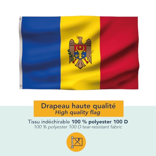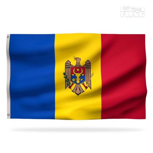 Get your flag - علم مولدوفا فاخر 90 × 60 سم - علم مولدوفا متين وعالي الجودة مع فتحتين معدنيتين - كن فخورًا بألوانك