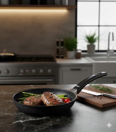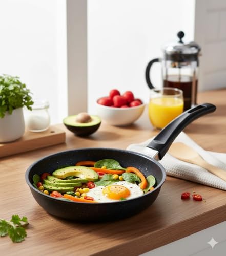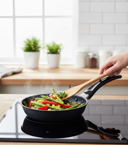 - طبخ متعدد الاستخدامات: طاسة قلي فاخرة ومقاومة للالتصاق مثالية للبيض والفطائر والخضروات واحتياجات الطبخ اليومية مع سطح مطلي مرقط.