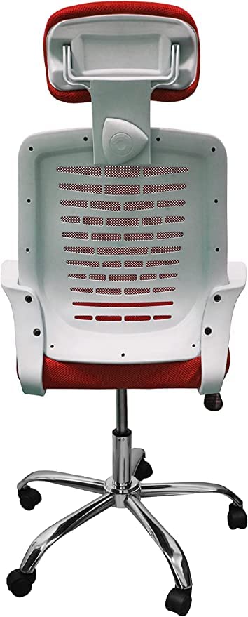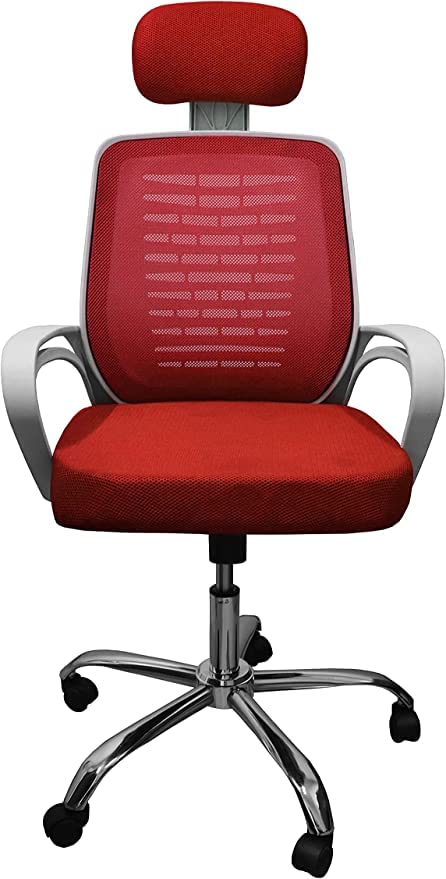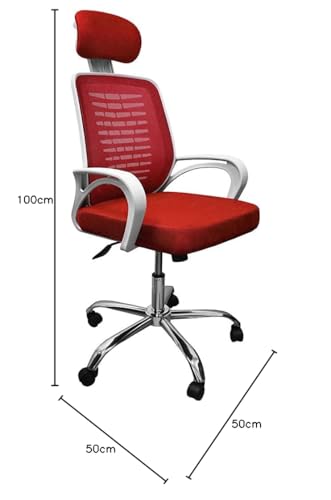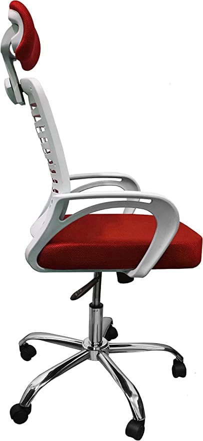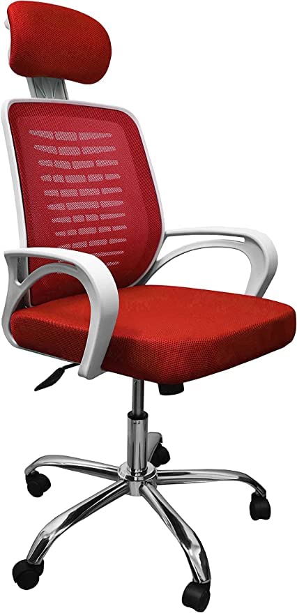 Reyad Group - كرسي مكتب فاخر من البلاستيك الأبيض مع مسند رأس شبكي قابل للتعديل ونجمة معدنية قوية - من ماركت مصر (كرسي أحمر)