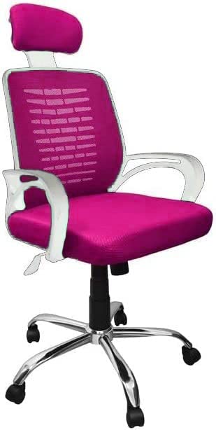 Reyad Group - كرسي مكتب فاخر مع مسند رأس بلاستيكي أبيض قابل للتعديل وظهر شبكي ونجمة معدنية قوية - ماركت مصر (روز، كرسي مدير)