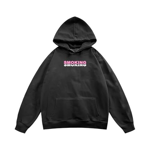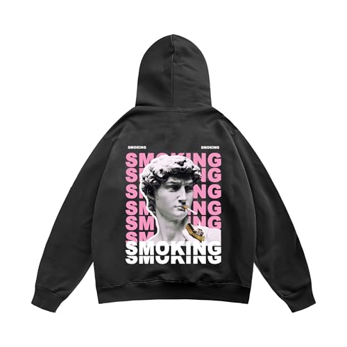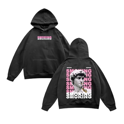 Print n Go - هودي قطن كبير الحجم - تصميم كلمة "Smoking" مع تمثال فني، ملابس كاجوال للجنسين