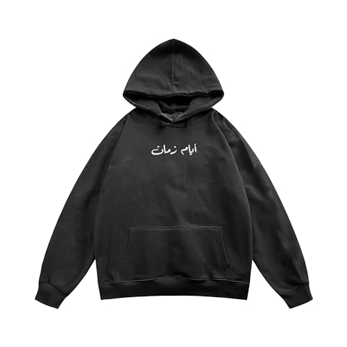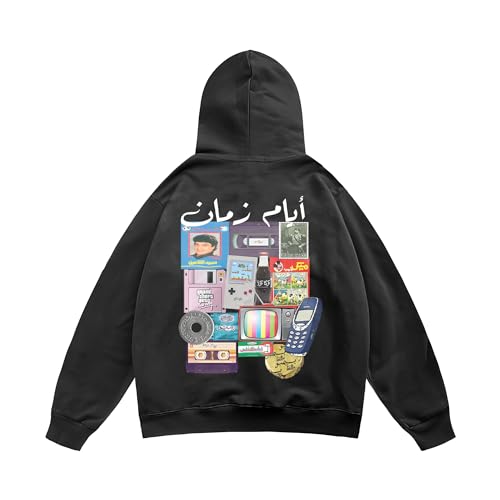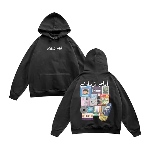 Print n Go - سويت شيرت قطن بغطاء للرأس وقصة فضفاضة (اوفر سايز) بتصميمات مصرية بطباعة عبارة «أيام زمان»