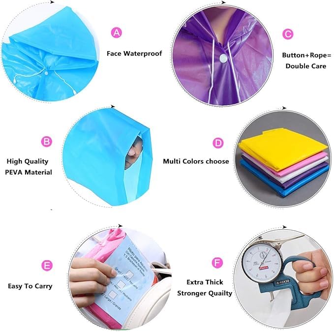 Generic - معطف مطري فاخر بمادة PEVA مقاومة للماء، تصميم قابل للطي وخفيف الوزن، حماية مزدوجة بألوان جذابة ومتانة فائقة للاستخدام اليومي والمغامرات