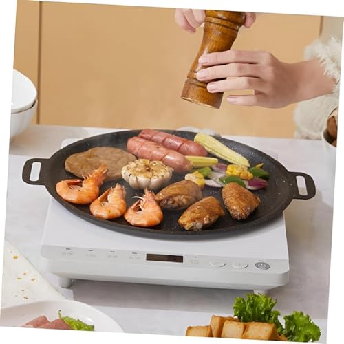Generic - جريل مقلاة مصنوع من الحديد الزهر مع طلاء جرانيت، باللون الأسود الجرانيتي، بسطح مضاد للالتصاق، مثالي للبيتزا واللحوم والخضروات