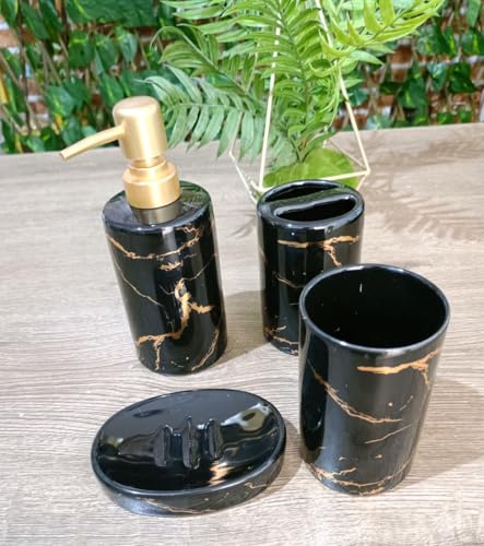 Generic - "طقم حمام فاخر من البورسلين - مستورد عالي الجودة - متوفر باللونين الأسود والأبيض - يحتوي على 4 قطع متنوعة: ديسبنسر، صابونة، حامل معجون - من جينيريك