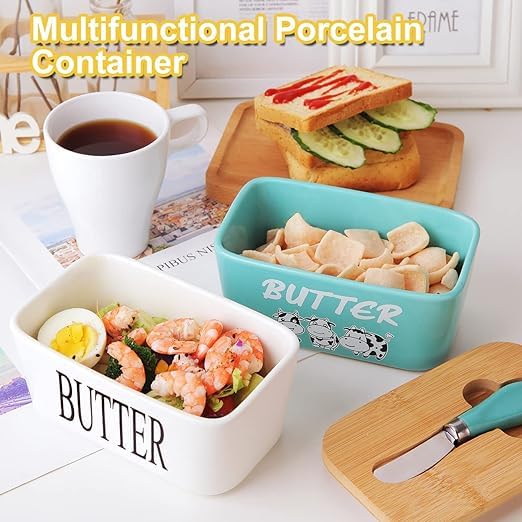 - ✅ 【متوافق مع الفريزر】مثالي لحفظ الزبدة في الفريزر مع الحفاظ على قوامها ونكهتها، بينما يضمن الخزف المتين جودة طويلة الأمد وحماية من التشقق أو التلف. ❄️