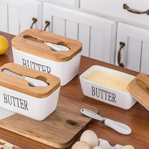 - ✅ 【غطاء من الخيزران الطبيعي】يحافظ غطاء الخيزران الصديق للبيئة على نضارة الزبدة من خلال منع دخول الهواء والروائح الخارجية، مما يحافظ على نكهتها ونعومتها، ويضفي لمسة دافئة وطبيعية على ديكور سطح مطبخك. 🌿