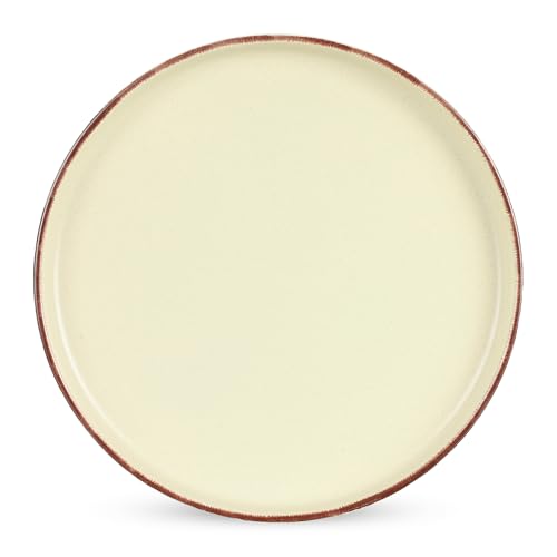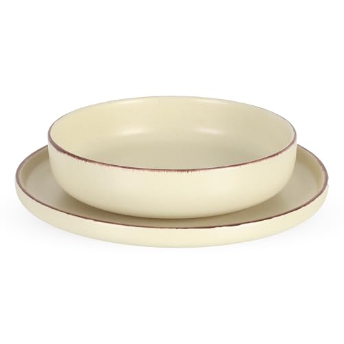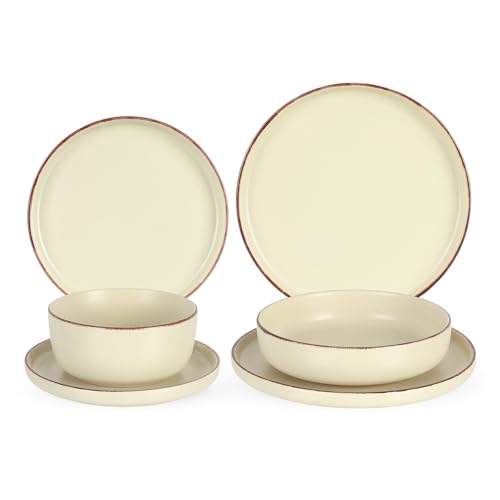 Generic - طقم عشاء من البورسلين من 24 قطعة لـ 6 أشخاص، كريمي مع حواف بلون بني