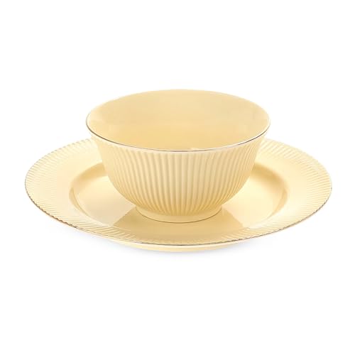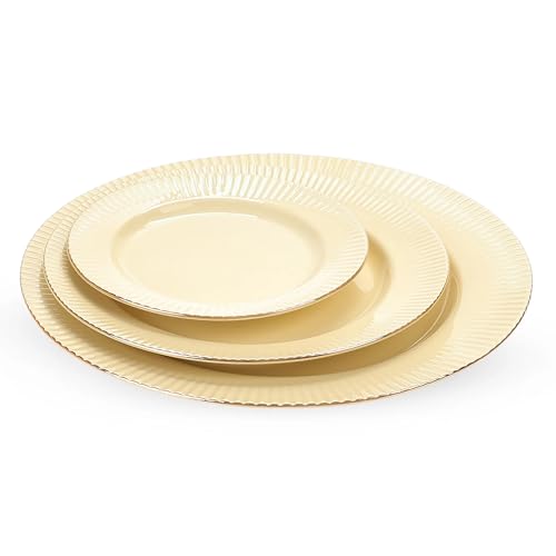 - تصميم أنيق: يضيف نظام الألوان الكريمي الكلاسيكي مع الحواف المضلعة الدقيقة لمسة راقية إلى أي إعداد للطاولة