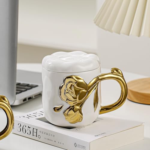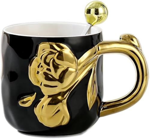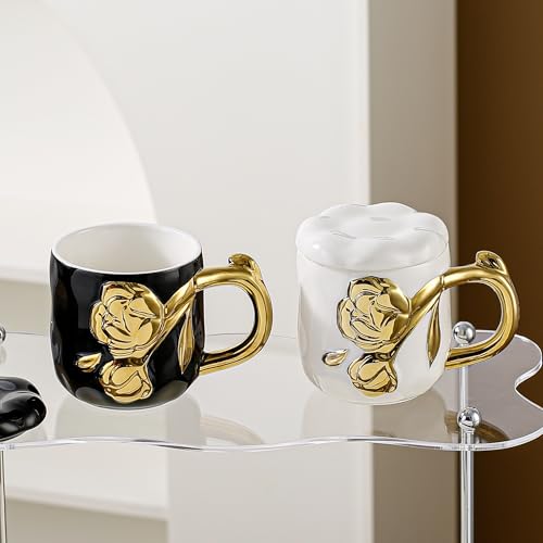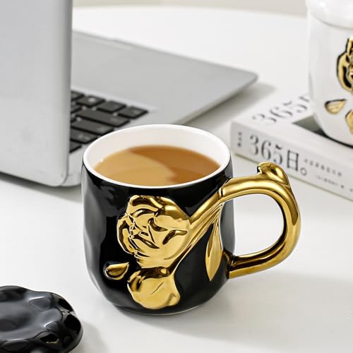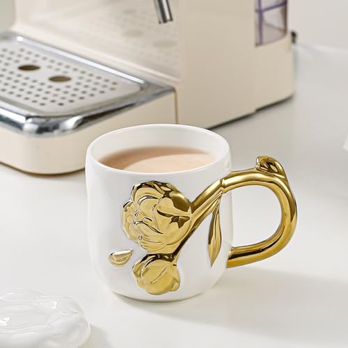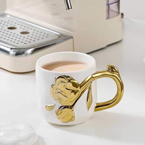 AREXOL - مج بورسلين فاخر بيد جزع شجرة ذهبي بدون غطاء لتقديم القهوة والشاي والمشروبات الساخنة والباردة تصميم أنيق يناسب المنزل والمكتب والاستخدام اليومي