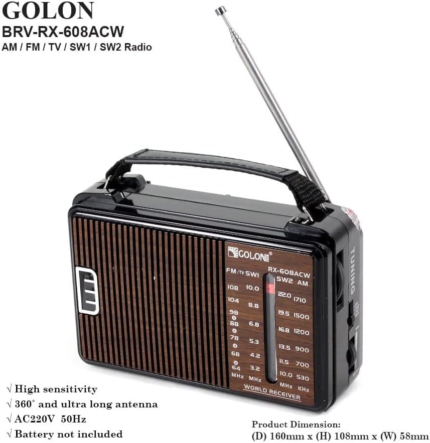 AREXOL - راديو تلفزيون محمول فاخر ايه ام اف ام اس دبليو بصوت واضح واريال هوائي داخلي قوي ونظام طاقة مزدوج للاستماع المستمر للقرآن في المنزل