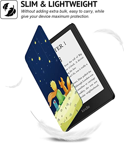 Generic - جراب حماية من الجلد الصناعي لجهاز كيندل بيبر وايت الجيل 11 وكيندل بيبر وايت سيجنتشر ايديشن (6.8 بوصة، إصدار 2021) - جراب بخاصية التشغيل/الايقاف التلقائي، بتصميم ثعلب وولد