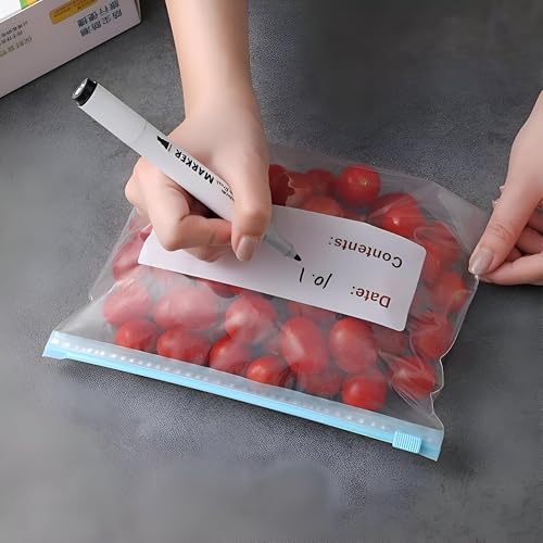 - مع مساحة للكتابة ، تتيح لك حقيبة التخزين العملية هذه تسمية المحتويات والتواريخ ، مما يساعدك على تتبع نضارة وتنظيم الفريزر بسهولة. لا مزيد من التخمين حول ما يوجد داخل كل حقيبة أو عند تخزينها ، مما يضمن لك دائما الوصول إلى البضائع المجمدة بطريقة منظمة. هذه الميزة مفيدة بشكل خاص عند محاولة الحفاظ على مطبخ منظم بشكل جيد.