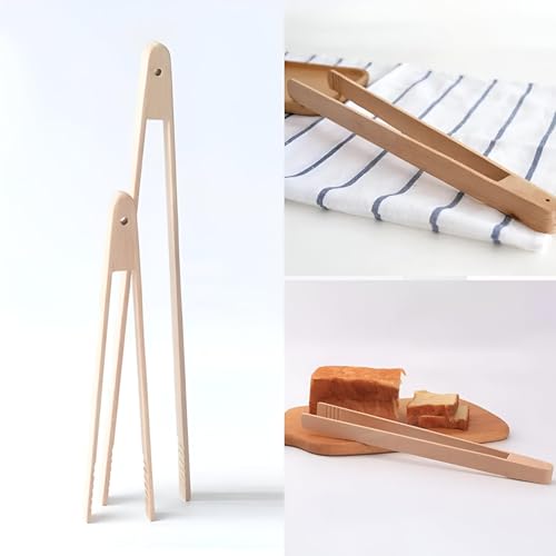 Generic - ماسك خشبي عالي الجودة - ملقط مطبخ متعدد الوظائف للطهي والشواء والتقديم مقاوم للبقع بشكل طبيعي ومحايد النكهة - مثالي للشواء والخبز والقلي (2 قطعة)