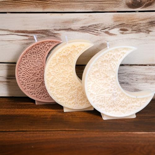 Tablouhaty - مجموعة شموع رمضانية للديكور - تصاميم هلال وفانوس ونجوم - ديكور شمع دافئ للاحتفالات بالعيد والمنزل، بيج