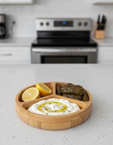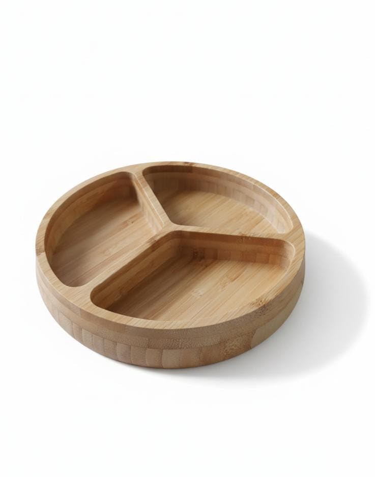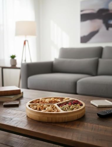 Spaceshoop - طبق تقديم دائري خشب طبيعي من الخيزران من 3 أقسام صديق للبيئة للوجبات الخفيفة والمقبلات والوجبات الصحية (1، بيج، صغير)