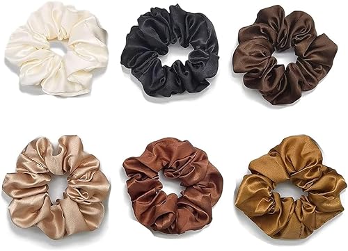 AREXOL - مجموعة من 6 ربطات شعر مطاطية كبيرة من الساتان الرائع للنساء والبنات، توك أستك للشعر ناعمة ولطيفة لا تسبب التلف، رائعة للتصفيفات اليومية والمظهر الأنيق