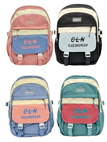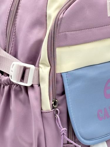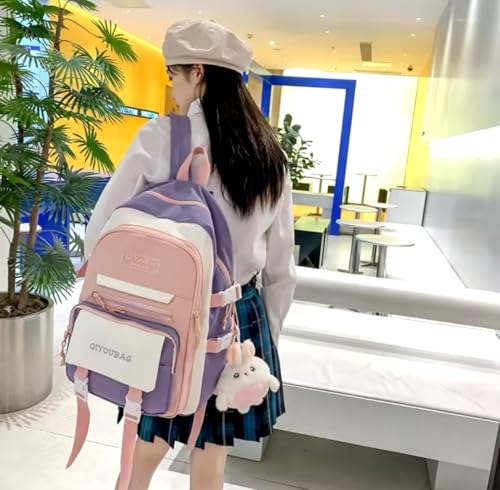 Qshop - شنطة ظهر مدرسية بريميوم والاستخدامات اليومية، شنطة ظهر للابتوب، شنطة ظهر مقاومة للماء، مع أكسسوارات تعليقة من القطيفة للمراهقات والطالبات والنساء( مقاس 42*30*16سم)