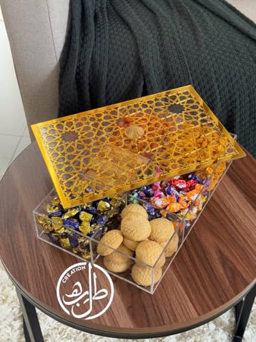 Generic - صندوق تقديم وتخزين من الأكريليك والمعدن، مقسم إلى 6 أقسام، بمقاس 91.44 × 60.96 سم، مع غطاء بتصميم أرابيسك ذهبي