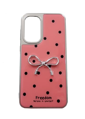 Generic - جراب حماية مقاوم للصدمات بظهر لامع وفيونكة فضية ثلاثية الأبعاد وتصميم منقط بولكا رفيع وأنيق مميز للنساء والبنات جراب موبايل متوافق مع موبايل سامسونج جالاكسي A36 (كشمير وفضي)
