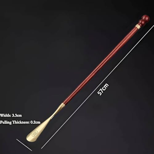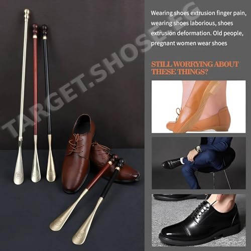 Generic - لبيسة حذاء فاخرة من الخشب الطبيعي والنحاس المصقول – لبيسه جزم طويلة بدون انحناء – معلقه حذاء مقاومة للصدأ - تصميم أنيق ومقبض مريح - للرجال والنساء وكبار السن مقاس 57سم