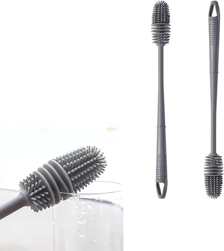 Generic - فرشاة تنظيف الزجاجات من السيليكون، آمنة لببرونات الأطفال والبرطمانات وزمزميات الماء، شعيرات ناعمة مرنة ومقبض طويل لتنظيف سهل