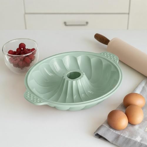 Generic - قالب كيك سيليكون فاخر مقاوم للالتصاق بتصميم لولبي دائري – آمن للفرن والمايكرويف والفريزر – مرن وسهل الإخراج والتنظيف لصنع الكيك والحلويات والمخبوزات (اخضر فاتح)