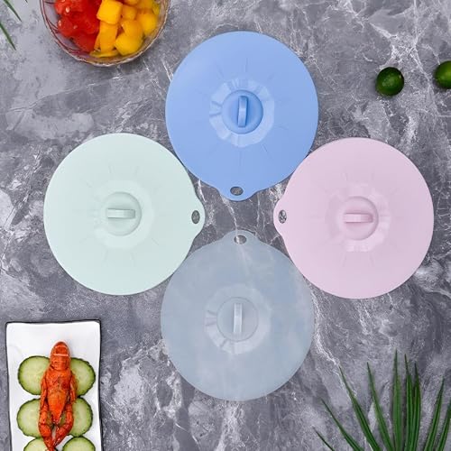 Generic - اغطية سيليكون فاخرة - اغطية اوعية مقاومة للحرارة ومانعة للتسرب لتخزين الطعام، مما يضمن بقاء بقايا الطعام طازجة وخالية من الانسكابات (4 قطع من اللون الموضح)