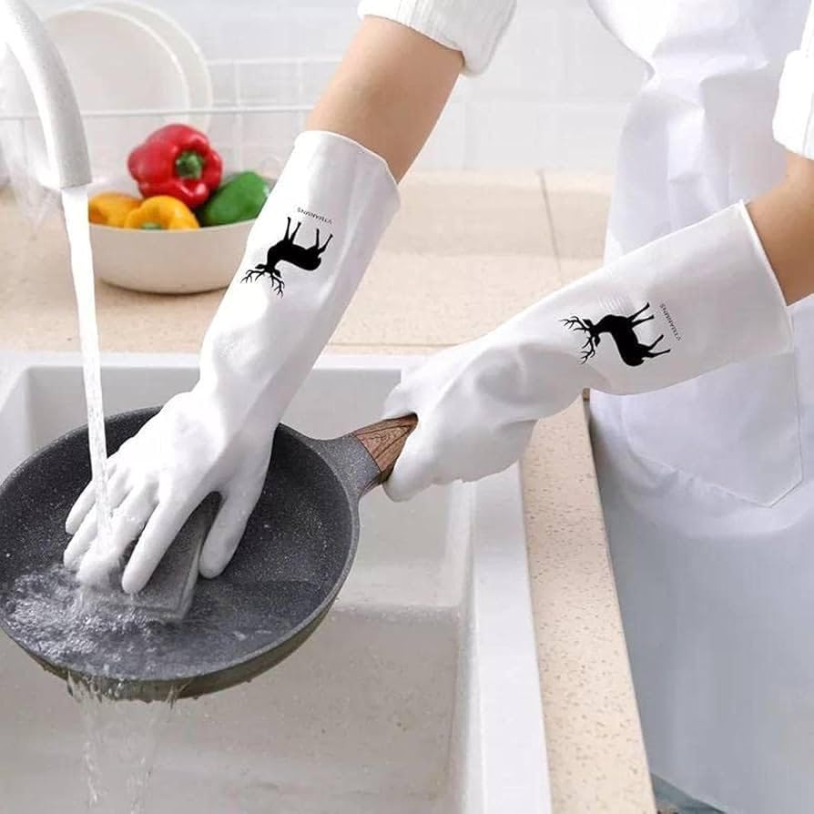 Generic - قفازات غسيل الاطباق من السيليكون الفاخر 2 في 1 - قفازات مطبخ قابلة لاعادة الاستخدام لغسل الاطباق والجدران والاسطح، مضادة للقطع ومقاومة للحرارة