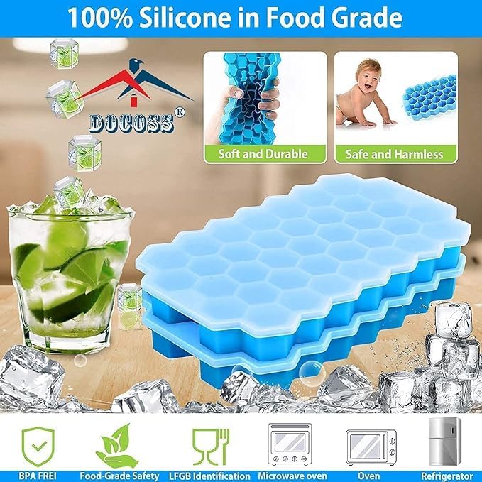 Generic - صواني ثلج سيليكون 37 تجويف، صينية ثلج سيليكون مع غطاء للفريزر (متعددة الألوان) قطعة واحدة