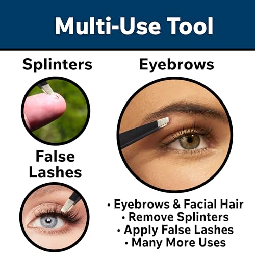 Cazura - ملقاط بطرف مائل للحواجب وشعر الوجه، أداة دقيقة احترافية من الفولاذ المقاوم للصدأ لإزالة الشعر تحت الجلد - أسود