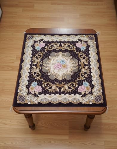 Generic - مفرش طاولة مربع مبطن من الجاكار مقاس 1.00 × 1.00 م متعدد الوظائف لغرفة المعيشة