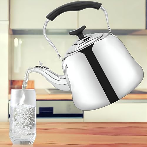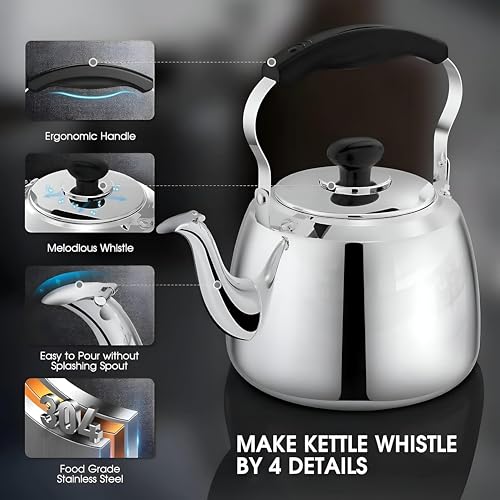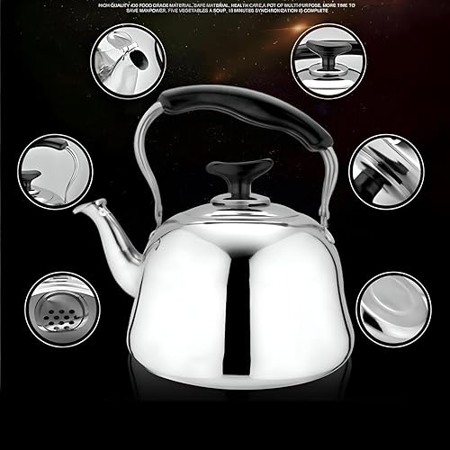 Generic - غلاية فاخرة من الستانلس ستيل - هيكل من الستانلس ستيل عالي الجودة، صافرة، مقبض مريح، غطاء محكم وقاعدة مطلية بالالومنيوم تمتص الحرارة بالتساوي لتخمير الشاي بسرعة 1.5 لتر
