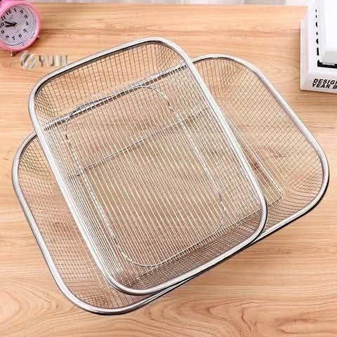 Generic - مصفاة فاخرة من الستانلس ستيل - مصفاة مستطيلة متعددة الاغراض مع قاعدة مرتفعة لتصريف الفواكه والخضروات وغسلها وتخزينها مقاس 29 × 21 سم (عبوة واحدة)