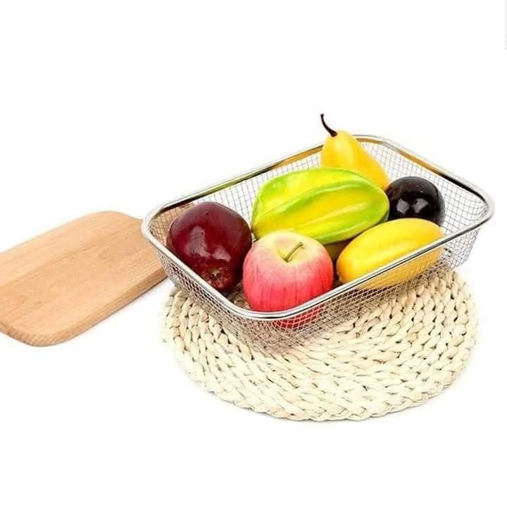 Generic - مصفاة فاخرة من الستانلس ستيل - مصفاة مستطيلة متعددة الاغراض مع قاعدة مرتفعة لتصريف الفواكه والخضروات وغسلها وتخزينها مقاس 34 × 24 سم (عبوة واحدة)