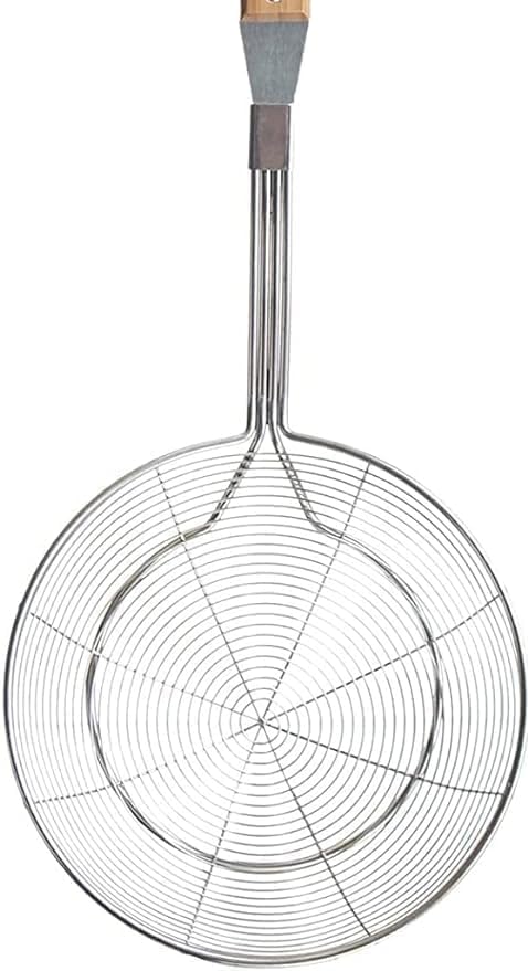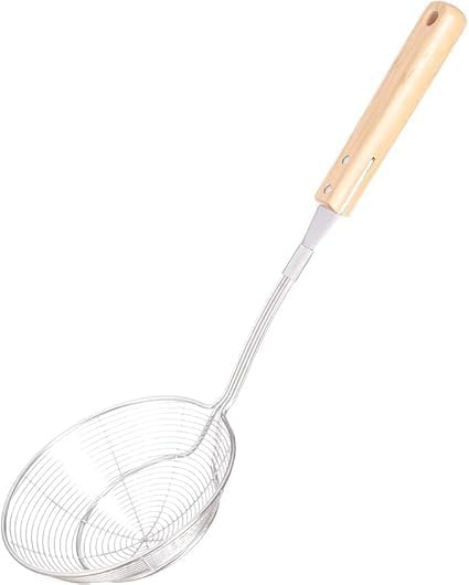 Generic - صفاية من الفولاذ المقاوم للصدأ بمقبض خشبي - صفاية مطبخ متعددة الأغراض للطهي والقلي، آمنة للاستخدام في غسالة الأطباق (صغيرة)
