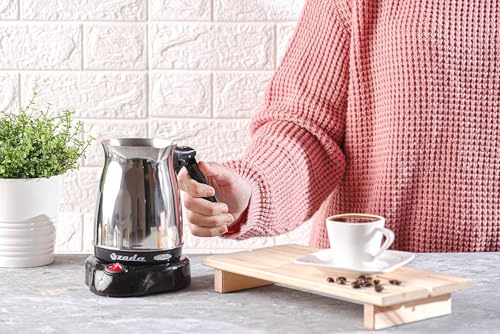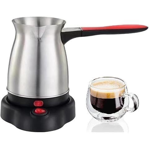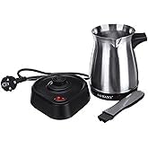 Generic - غلاية قهوة كهربائية فاخرة من الستانلس ستيل مع قاعدة قابلة للفصل، ماكينة تحضير القهوة التركية للتخمير السلس، وعاء قهوة صغير الحجم للمنزل والمكتب، سهل التنظيف، جهاز قهوة انيق